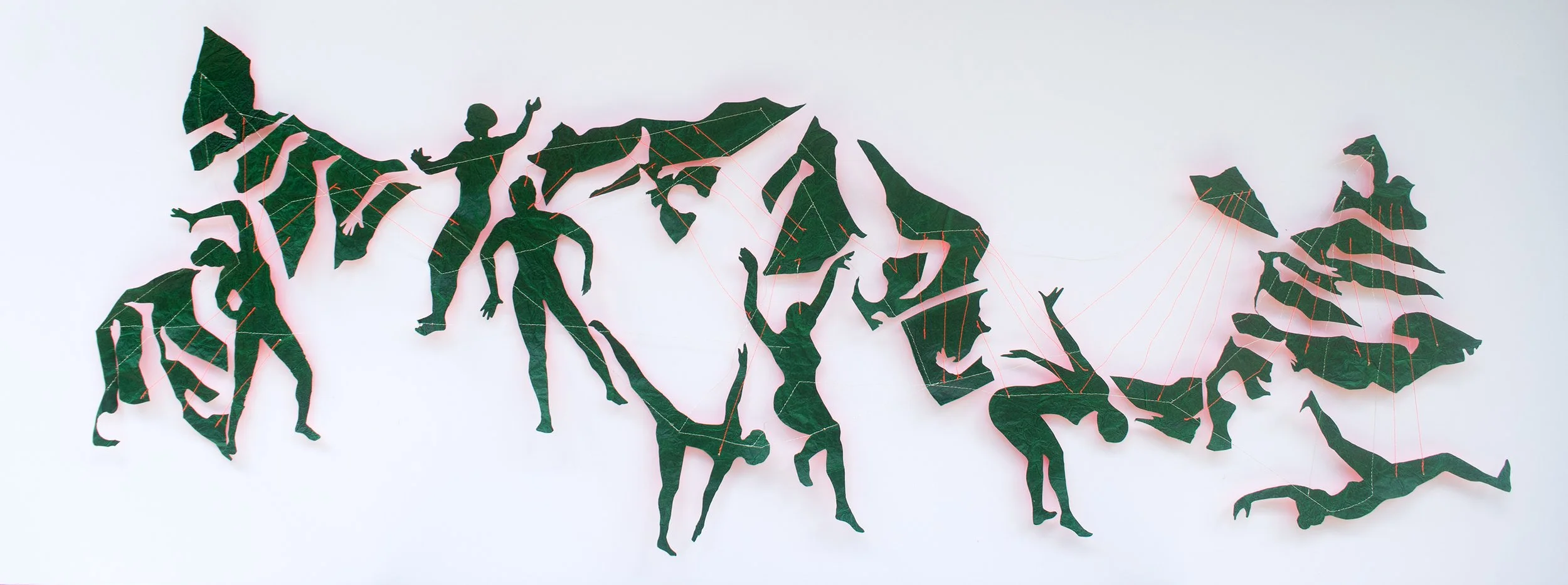 Paper, Acrylic Paint; Hand cut out and machine sewn